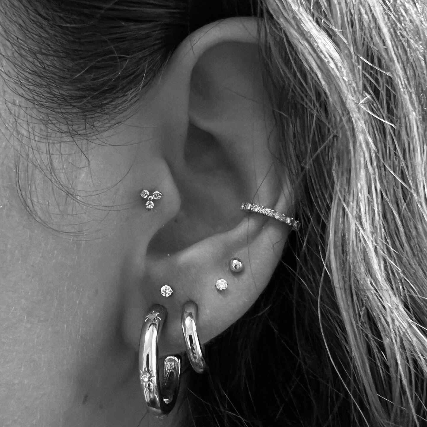 Règles d’or pour l'entretien de votre nouveau piercing: Nettoyez régulièrement : Utilisez une solution saline ou un antiseptique doux pour nettoyer la zone percée deux fois par jour. Évitez les produits à base d'alcool ou de peroxyde d'hydrogène qui peuvent irriter la peau. Évitez de toucher : Ne touchez pas votre piercing avec des mains sales. Assurez-vous de bien vous laver les mains avant de manipuler vos boucles d'oreilles. Désinfecter : utiliser du diaseptyl spray les 4 première semaines matin et soir Soyez patient : Laissez le bijou en place jusqu'à ce que le piercing soit complètement guéri. Retirer ou changer les boucles d'oreilles trop tôt peut entraîner des infections ou des cicatrices. Évitez l'eau sale : Gardez vos oreilles à l'abri de l'eau de piscine, des jacuzzis et des lacs pendant la période de guérison pour éviter les infections. Surveillez les signes d'infection : Rougeurs, gonflements, douleurs intenses ou écoulements de pus peuvent être des signes d'infection. Si vous remarquez ces symptômes, consultez un professionnel de la santé. Choisissez des bijoux appropriés : Utilisez des bijoux en matériaux hypoallergéniques comme le titane ou l'or 14 carats pour éviter les réactions allergiques. Soyez prudent en dormant : Essayez de ne pas dormir sur le côté du nouveau piercing pour éviter toute pression excessive et réduire le risque d'irritation. En suivant ces conseils, vous favoriserez une guérison rapide et en toute sécurité de votre nouveau piercing à l'oreille.
